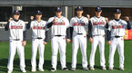 [OSEN=잠실, 이대선 기자] 15일 오전 서울 잠실야구장에서 2020년 두산베어스 창단기념식 및 포토데이 행사가 열렸다.두산 전역선수 한주성, 채지선, 지윤, 전태준, 전용훈, 서예일이 기념촬영을 하고 있다. /sunday@osen.co.kr