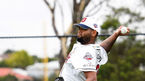 [OSEN=멜버른(호주), 이대선 기자] 두산 베어스의 2020 스프링캠프가 11일(한국시간) 호주 빅토리아주 질롱 베이스볼 센터에서 진행됐다.두산 프렉센이 캐치볼을 하고 있다. /sunday@osen.co.kr