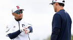 [OSEN=멜버른(호주), 이대선 기자] 두산 베어스의 2020 스프링캠프가 11일(한국시간) 호주 빅토리아주 질롱 베이스볼 센터에서 진행됐다.두산 프렉센이 캐치볼을 하며 알칸타라와 이야기를 나누고 있다. /sunday@osen.co.kr
