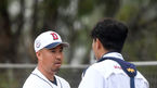 [OSEN=멜버른(호주), 이대선 기자] 두산 베어스의 2020 스프링캠프가 12일(한국시간) 호주 빅토리아주 질롱 베이스볼 센터에서 진행됐다.불펜 피칭을 마친 두산 유희관이 포수 장규빈과 이야기를 나누고 있다. /sunday@osen.co.kr