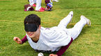 [OSEN=가오슝, 손용호 기자] 손혁 감독으로 수장이 바뀐 키움 히어로즈가 2019년 준우승의 아쉬움을 뒤로한 채 대만의 최남단 가오슝에서 구슬땀을 흘리고 있다.15일 박주홍이 안대를 하고 감각으로 공을 찾는 게임 겸 훈련을 하고