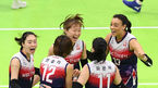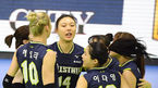 [OSEN=수원, 민경훈 기자] 15일 오후 수원 실내체육관에서 ‘도드람 2019-2020 V-리그’ 여자부 현대건설과 KGC인삼공사의 경기가 열렸다.1세트, 공격에 성공한 KGC인삼공사 선수들이 기뻐하고 있다. /rumi@osen.co.kr
