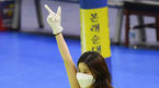 [OSEN=수원, 민경훈 기자] 22일 오후 수원 실내체육관에서 ‘도드람 2019-2020 V-리그’ 남자부 한국전력과 현대캐피탈의 경기가 열렸다.한국전력 치어리더들이 마스크를 쓰고 응원을 펼치고 있다. /rumi@osen.co.kr