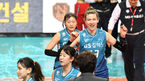 [OSEN=장충, 최규한 기자] 23일 오후 서울 장충체육관에서 ‘도드람 2019-2020 V리그’ 여자부 GS칼텍스와 현대건설의 경기가 열렸다.4세트를 잡아낸 현대건설 세터 이다영과 리베로 이영주가 기뻐하고 있다. /dreamer@osen.co.kr