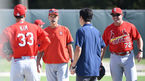 [OSEN=주피터(미국 플로리다주), 박준형 기자] 세인트루이스 김광현이 24일(한국시간) 미국 플로리다주 주피터 로저 딘 스타디움에서 팀훈련을 소화했다.매덕스 코치와 에버스거드 코치가 김광현에게 이야기를 건네고 있다./ soul1
