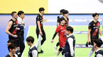 [OSEN=수원, 이대선 기자] 삼성화재 블루팡스는 25일 수원실내체육관에서 벌어진 도드람 2019-2020 V리그 남자부 한국전력 빅스톰과의 경기에서 3-2(25-23, 24-26, 22-25, 25-10, 15-11)로 승리했다.경기 종료 후 한국전력 선수들이 경기장을