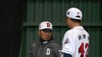 [OSEN=미야자키(일본), 이대선 기자] 29일 오후 (한국시간) 일본 미야자키 사이토구장에서 두산 베어스의 스프링캠프가 열렸다.불펜피칭을 마친 두산 이용찬이 정상호와 이야기를 나누고 있다. /sunday@osen.co.kr