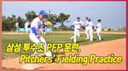 [OSEN=오키나와(일본), 곽영래 기자]29일 오후 일본 오키나와 온나 아카마 볼파크에서 삼성 라이온즈와 LG 트윈스가 연습경기를 진행했다. 삼성 투수조가 PFP((Pitchers’ Fielding Practice)훈련을 하고 있다. /youngrae@osen.co.kr