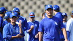 [OSEN=오키나와(일본), 곽영래 기자] 삼성 라이온즈가 6일 오후 일본 오키나와 온나 아카마 볼파크에서 훈련을 진행했다.최태원 수석코치가 야수들과 이야기를 나누고 있다. /youngrae@osen.co.kr