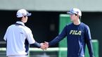 [OSEN=미야자키(일본), 이대선 기자] 6일 일본 미야자키 소켄구장에서 두산 베어스의 스프링캠프가 진행됐다.수비훈련을 마친 두산 박건우가 타격훈련을 마친 서예일을 칭찬하고 있다. /sunday@osen.co.kr