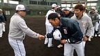 [OSEN=미야자키(일본), 이대선 기자] 7일 일본 미야자키 소켄구장에서 두산 베어스의 스프링캠프가 진행됐다.훈련을 마친 두산 김태형 감독이 선수들과 인사를 나누고 있다. /sunday@osen.co.kr