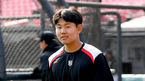 [OSEN=수원, 김성락 기자] 12일 오후 수원 케이티위즈파크에서 2020 프로야구 정규시즌 개막을 앞둔 KT 위즈가 그라운드 훈련시간을 가졌다.KT 소형준이 인터뷰를 하기 위해 그라운드로 나오고 있다./ksl0919@osen.co.kr