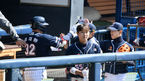 [OSEN=잠실, 이대선 기자] 두산 베어스 선수단이 16일 서울 잠실야구장에서 청백전을 가졌다.4회초 두산 청팀 페르난데스가 적시 2루타를 치고 환호하고 있다. /sunday@osen.co.kr