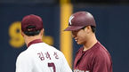 [OSEN=고척, 민경훈 기자] 20일 서울 고척스카이돔에서 키움 히어로즈의 연습경기가 진행됐다.2회초 1사 주자 2루 키움 어웨이팀 박주홍이 1타점 선취 적시타를 날린 후 홈팀 김하성에게 축하를 받고 있다./ rumi@osen.co.kr