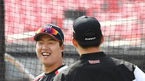 [OSEN=수원 , 곽영래 기자] KT 위즈가 21일 오후 수원kt위즈파크에서 훈련을 진행했다.강백호가 배정대와 이야기를 나누고 있다. /youngrae@osen.co.kr