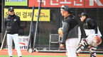 [OSEN=수원 , 곽영래 기자] KT 위즈가 21일 오후 수원kt위즈파크에서 훈련을 진행했다.이강철 감독이 강현우의 훈련모습에 미소를 짓고 있다. /youngrae@osen.co.kr
