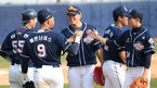 [OSEN=잠실, 조은정 기자] 두산 베어스 선수단이 21일 서울 잠실야구장에서 청백전을 가졌다. 이날 경기에서 청팀이 백팀을 3-0으로 꺾고 승리했다.경기 종료 후 두산 청팀 선수들이 기뻐학고 있다. /cej@osen.co.kr