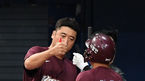 [OSEN=고척, 이대선 기자] 키움 히어로즈 선수단이 22일 오후 서울 고척스카이돔에서 자체 청백전을 가졌다.2회초 1사에서 김주형이 솔로홈런을 치고 손혁 감독과 하이파이브를 하고 있다./sunday@osen.co.kr
