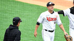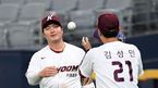 [OSEN=고척, 민경훈 기자] 26일 서울 고척스카이돔에서 키움 히어로즈의 자체 청백전이 진행됐다.4회초 1사 주자 1,3루 백팀 김성민이 1루로 송구실책을 한 후 1루수 박병호와 얘기를 나누고 있다./ rumi@osen.co.kr