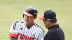 [OSEN=잠실,박준형 기자] 26일 오후 서울 잠실구장에서 LG트윈스의 자체 청백전이 진행됐다.1회말 LG 김호은이 선취 1타점 적시타를 날린뒤 1루 코치와 하이파이브를 하고 있다/ soul1014@osen.co.kr