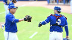 [OSEN=수원,박준형 기자] 29일 오후 경기도 수원시 수원 kt위즈파크에서 kt 위즈 자체 청백전이 진행됐다.1회말 1사 1루 배정대가 선취 1타점 2루타를 날린뒤 천성호와 하이파이브를 하고 있다. / soul1014@osen.co.kr