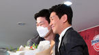 [OSEN=지형준 기자] ‘현대모비스의 심장’ 양동근이 1일 오후 서울 논현동 KBL 센터에서 은퇴기자회견을 가졌다.양동근이 조성민에 꽃다발을 건네 받으며 포옹을 하고 있다.현대모비스는 지난 31일 “양동근이 현역선수