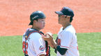 [OSEN=김해, 최규한 기자] 3일 오후 경상남도 김해 상동구장에서 롯데 자이언츠의 자체 청백전 경기가 열렸다.3회초 연이은 실점에 롯데 투수 박세웅과 포수 정보근이 마운드에서 대화를 나누고 있다. / dreamer@osen.co.kr