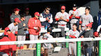 [OSEN=부산, 민경훈 기자] 24일 오후 부산 사직구장에서 롯데 자이언츠와 NC 다이노스의연습경기가 열릴 예정인 가운데 경기 전 그라운드 훈련이 진행됐다. 경기 전 NC 선수들이 덕아웃에서 롯데 선수들의 훈련을 지켜보고 있다.