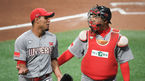 [OSEN=고척, 최규한 기자] 25일 오후 서울 고척 스카이돔에서 키움 히어로즈와 SK 와이번스의 연습경기가 열렸다.4회말 1실점한 SK 선발 핀토와 포수 이재원이 더그아웃으로 향하며 대화를 나누고 있다. /dreamer@osen.co.kr