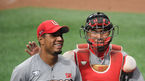 [OSEN=박준형 기자] 25일 오후 서울 고척스카이돔에서 2020 프로야구 키움 히어로즈와 SK 와이번스의 연습경기가 진행됐다.4회말 이닝종료 후 핀토와 이재원이 이야기 나누며 더그아웃으로 들어가고 있다 ./ soul1014@osen.co.kr