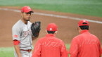 [OSEN=박준형 기자] 25일 오후 서울 고척스카이돔에서 2020 프로야구 키움 히어로즈와 SK 와이번스의 연습경기가 진행됐다.4회말 키움 모터에게 볼넷을 허용한 SK 선발투수 핀토가 최상덕 코치의 마운드 방문을 지켜보고 있다 ./ soul1