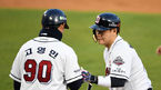 [OSEN=잠실, 이대선 기자] 25일 오후 서울 잠실야구장에서 두산 베어스와 KT 위즈의 연습경기가 열렸다.4회말 1사 1,2루에서 두산 박세혁의 적시타 때 2루주자 페르난데스가홈을 밟고 있다. /sunday@osen.co.kr