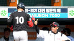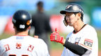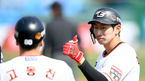[OSEN=대전, 김성락 기자] 29일 오후 대전 한화생명이글스파크에서 한화 이글스와 LG 트윈스의연습경기가 열렸다.3회말 1사 상황, 한화 정진호가 1루타를 날리고 고동진 코치와 하이파이브를 하고 있다./ksl0919@osen.co.kr