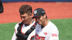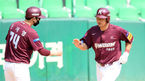 [OSEN=인천, 민경훈 기자] 1일 오후 인천 SK행복드림구장에서 SK 와이번스 키움 히어로즈의 연습경기가 열렸다.2회초 2사 주자 2,3루 키움 김혜성의 중견수 뒤 2타점 적시타때 홈을 밟은 임병욱과 박주홍이 덕아웃에서 키움 손혁 감