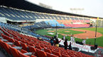 [OSEN=잠실, 지형준 기자] 1일 오후 서울 잠실야구장에서 두산 베어스와 LG 트윈스의 연습경기가 열렸다.LG 치어리더들이 무관중 경기에서 열띤 응원을 펼치고 있다. /jpnews@osen.co.kr