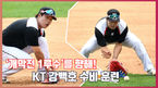 [OSEN=수원, 최규한 기자] KT 개막 1루수로 낙점된 ‘괴물 타자’ 강백호가 동료 야수들과 수비 호흡을 맞추며 구슬땀을 흘렸다.2일 오후 경기도 수원시 KT위즈파크에서 진행된 KT 위즈의 훈련. 1루수 자리에 선 강백호는 외야