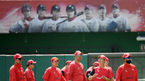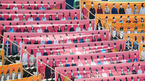 [OSEN=인천, 민경훈 기자] 4일 오후 인천 SK행복드림구장에서 SK 와이번스선수들이 프로야구 개막을 하루 앞두고 그라운드 훈련을 진행했다.무관중 경기지만 외야 관중석에 마스크를 쓴 관중들과 캐릭터가 그려진 플래카드를 설