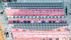 [OSEN=잠실, 조은정 기자] 4일 오후 서울 송파구 잠실야구장에서 LG 트윈스가 훈련을 가졌다.잠실야구장 외야석에 현수막이 걸리고 있다. /cej@osen.co.kr