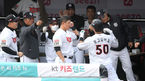 [OSEN=수원, 김성락 기자] 5일 오후 수원 KT위즈파크에서 ‘'2020 신한은행 SOL KBO 리그’ KT 위즈와 롯데 자이언츠의 경기가 열렸다.7회초 1사 1,2루에서 롯데 정훈이 마차도의 스리런포로 홈인하고 있다./ksl0919@osen.co.kr