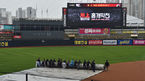 [OSEN=수원, 조은정 기자] 5일 오후 경기도 수원 KT위즈파크에서 ‘2020신한은행SOLKBO리그’ KT위즈와 롯데 자이언츠의 공식 개막전 경기가 열렸다.관계자들이 그라운드에 방수포를 덮고 있다. /cej@osen.co.kr