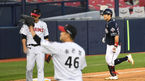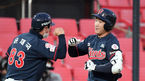 [OSEN=수원, 민경훈 기자] 6일 오후 경기도 수원 KT위즈파크에서 ‘2020 신한은행 SOL KBO리그’ KT위즈와 롯데 자이언츠의 경기가 열렸다.3회초 1사 주자 1,3루 롯데 손아섭의 우중간 1타점 적시타때 홈을 밟은 민병헌이 덕아웃에