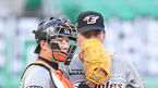 [OSEN=인천,박준형 기자]6일 오후 인천 SK행복드림구장에서 ' '2020 신한은행 SOL KBO리그' 한화 이글스와 SK 와이번스의 경기가 진행됐다.2회말 1사 1루 SK 김창평 타석때 한화 선발투수 임준섭과 최재훈 포수가 마운드서 이야기를 나누