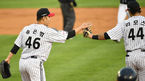 [OSEN=잠실, 최규한 기자] 6일 오후 서울 잠실야구장에서 ‘2020 신한은행 SOL KBO리그’ LG 트윈스와 두산 베어스의 경기가 열렸다.1회말 무사 1루 상황 두산 박세혁을 병살타로 이끈 LG 선발 송은범과 1루수 라모스가 인사를 나