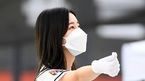 [OSEN=수원, 민경훈 기자] 6일 오후 경기도 수원 KT위즈파크에서 ‘2020 신한은행 SOL KBO리그’ KT위즈와 롯데 자이언츠의 경기가 열렸다.KT 김진아 치어리더가 영상을 보며 팬들에게 손하트를 날리고 있다. /rumi@osen.co.kr