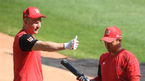 [OSEN=인천,박준형 기자]6일 오후 인천 SK행복드림구장에서 ' '2020 신한은행 SOL KBO리그' 한화 이글스와 SK 와이번스의 경기가 진행된다.경기에 앞서 SK 로맥이 조동화 코치와 악수를 나누고 있다./ soul1014@osen.co.kr