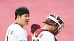 [OSEN=고척, 민경훈 기자] 9일 오후 서울 고척스카이돔에서 ‘2020신한은행SOLKBO리그’ 키움 히어로즈와 한화 이글스의 경기가 열렸다.1회초를 마친 키움 한현희가 박동원과 얘기를 나누며 덕아웃으로 향하고 있다./ rumi@osen.co