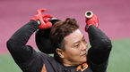 [OSEN=고척, 민경훈 기자] 10일 오후 서울 고척스카이돔에서 ‘2020 신한은행 SOL KBO리그’ 키움 히어로즈와 한화 이글스의 경기가 열렸다.한화 김태균이 훈련 중 땀을 닦고 있다./ rumi@osen.co.kr
