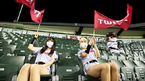[OSEN=잠실, 조은정 기자]12일 오후 서울 잠실야구장에서‘2020신한은행SOLKBO리그’ LG 트윈스와 SK 와이번스의 경기가 열렸다.무관중 경기가 열리는 잠실야구장에서 외야석에 자리한 LG 치어리더와 마스코트가 응원을 펼치고