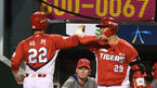 [OSEN=대전, 최규한 기자] 12일 오후 대전 한화생명이글스파크에서 ‘2020 신한은행 SOL KBO리그’ 한화 이글스와 KIA 타이거즈의 경기가 열렸다.9회초 1사 3루 상황 역전 1타점 희생플라이를 날린 KIA 장영석과 홈을 밟은 터커가