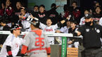 [OSEN=잠실, 지형준 기자] 12일 오후 서울 잠실야구장에서‘2020신한은행SOLKBO리그’ LG 트윈스와 SK 와이번스의 경기가 열렸다.3회말 무사 2루에서 LG 김현수가 1타점 동점 적시 2루타를 날리자 더그아웃의 동료선수들이 기뻐